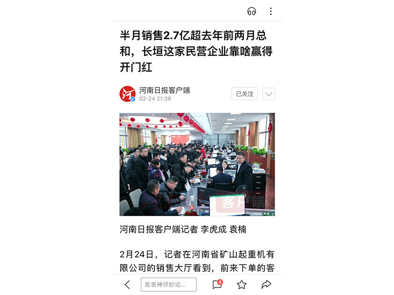 河南礦山被多家媒體爭相報(bào)道,絕非偶然事件。新聞聚焦的背后,展示的是河南礦山近年來在起重行業(yè)領(lǐng)域所取得的巨大成就,肯定了礦山人的辛勤努力與創(chuàng)新付出,也彰顯了河南礦山發(fā)展的蓬勃?jiǎng)蓊^和十足后勁!